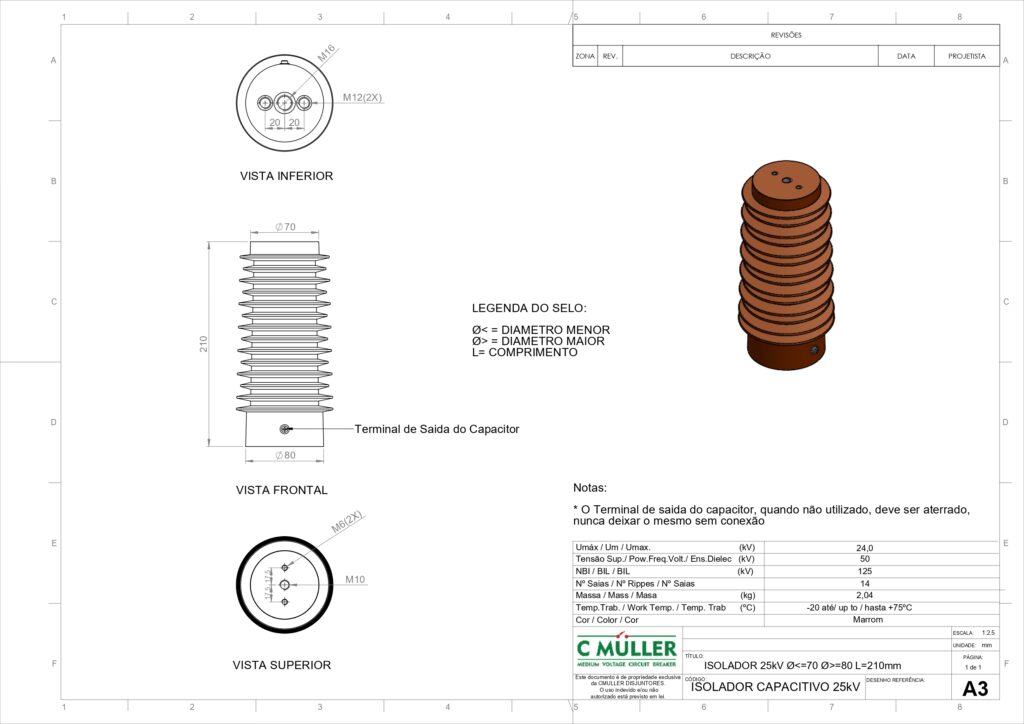 O isolador pedestal 25 kV da CMuller entrega maior robustez e desempenho para sistemas de média tensão, garantindo isolamento confiável mesmo em aplicações mais exigentes. Ideal para painéis, cubículos e disjuntores, é uma escolha segura para quem busca durabilidade, estabilidade e conformidade técnica.