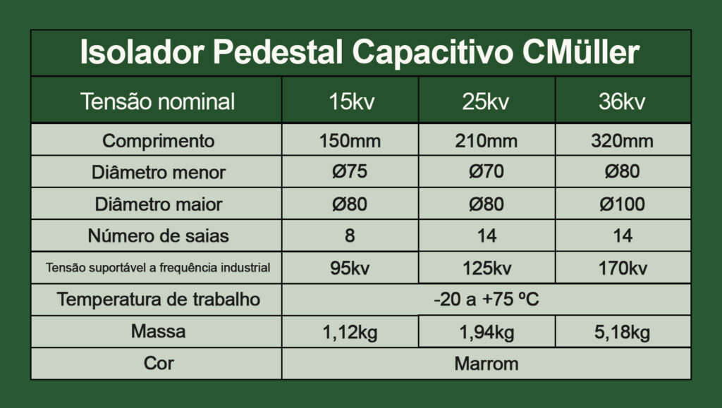 O isolador pedestal 15 kV da CMuller é a solução ideal para aplicações compactas em média tensão, oferecendo segurança elétrica, resistência mecânica e excelente desempenho dielétrico.